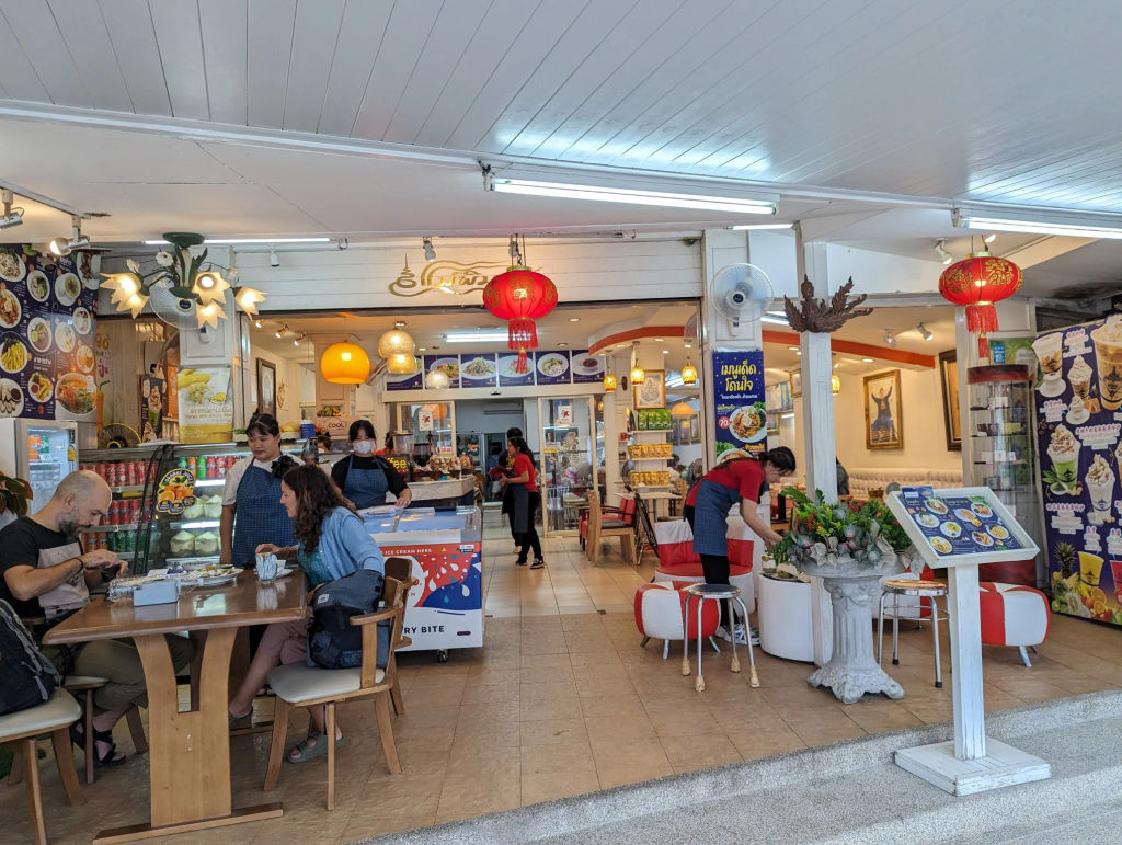 The restaurant is pretty good, just next to the white temple. They offer good Khao Soi Chicken (60B) and Thai Red Curry Pork (75B).